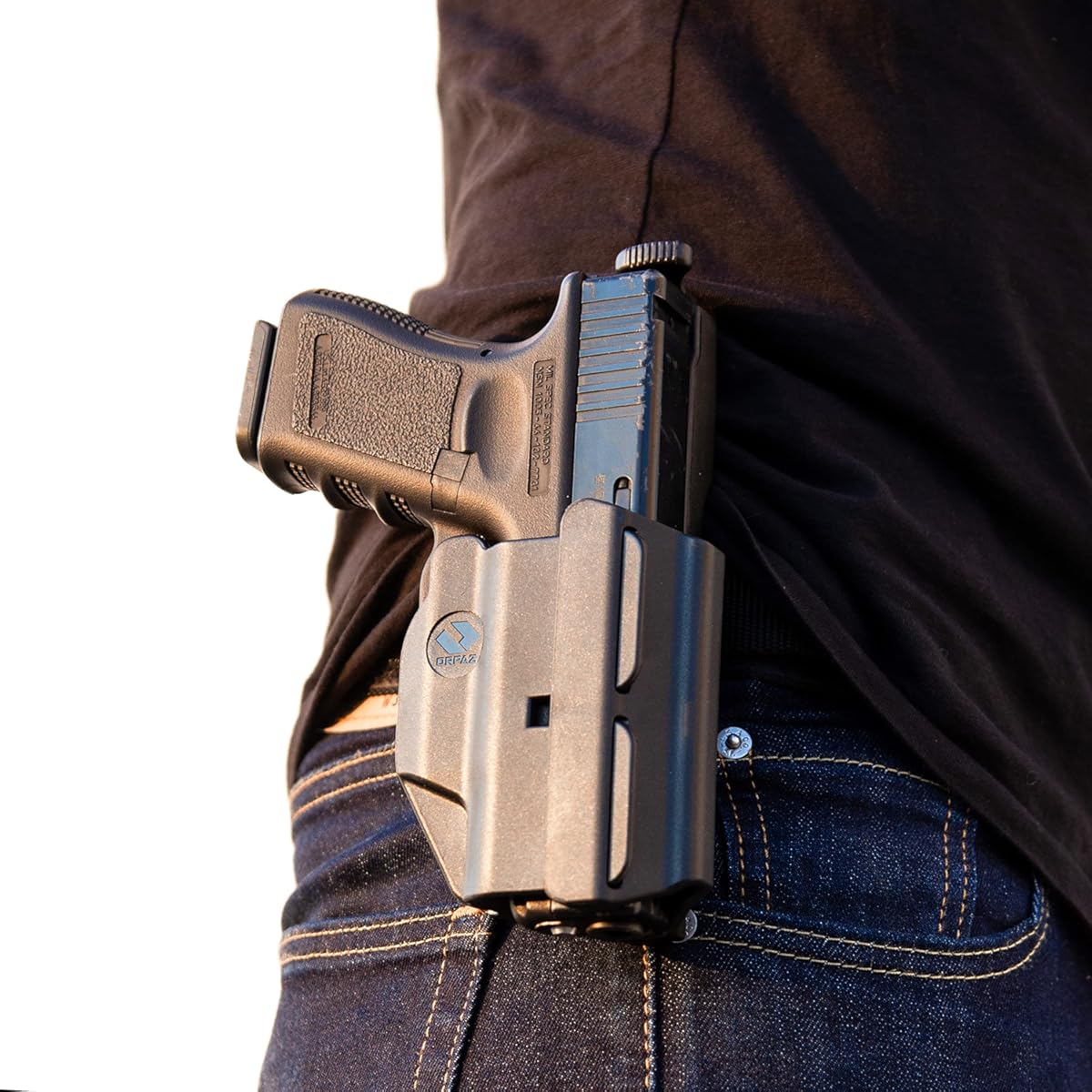 Estructura Abierta: Al ser una funda compacta, no cubre toda la corredera. Esto permite que sea compatible con pistolas que tienen compensadores, cañones roscados o miras de punto rojo (Optic Ready).